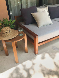 Round coffee table for indoors and outdoors, it works perfectly as a bureau and also as a side table.