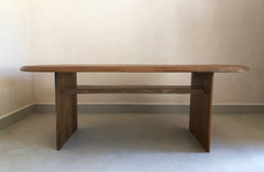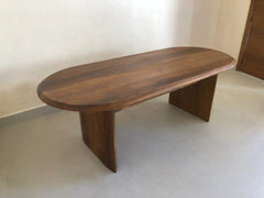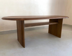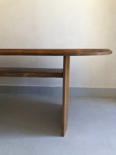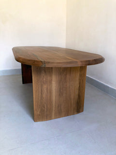 Esta mesa es extraordinaria, una pieza tan agradable de ver, con su forma ovalada, sus bordes biselados y un diseño desnivelado en sus patas que la hacen especial.