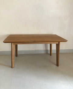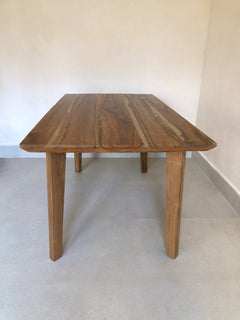 Mesa rectangular clásica con algunos detalles modernos. Sus bordes están biselados lo que le da liviandad al diseño. De doble grosor, se ve robusta y atractiva.
