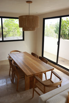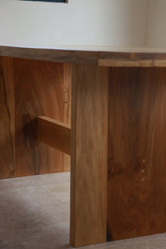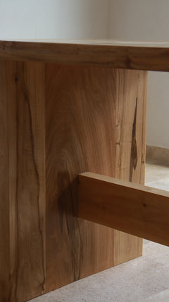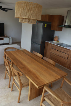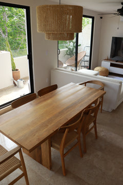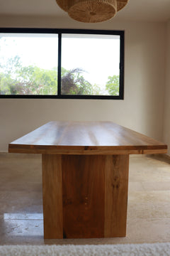 Table with a simple and elegant design, where what shines is the beauty of the wood. The legs are solid, which highlights the wood even more and gives a feeling of firmness and weight without losing elegance and the delicacy of the soft finishes that our carpenters know how to give to each piece.